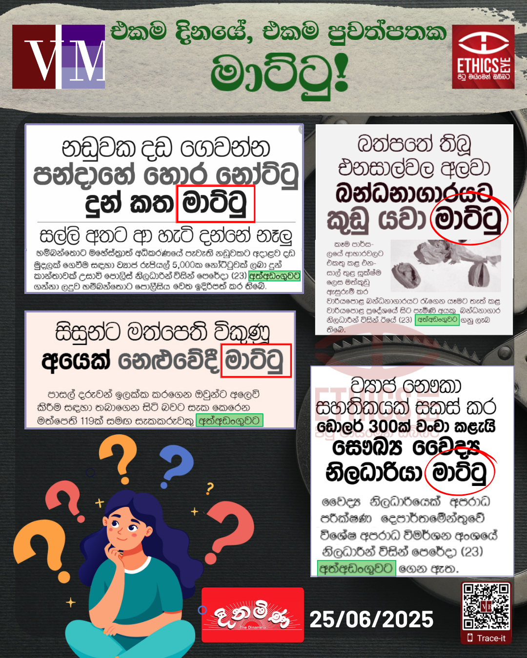 මෙහිදී සිරස්තල තුළ සඳහන් “මාට්ටු” යන්න වෙනුවට අන්තර්ගතයන් තුළ යොදා ඇති “අත්අඩංගු” යන්න මාධ්‍යට වඩා උචිත භාෂාවක් නොවේද?
