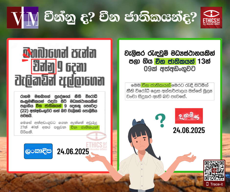 මෙවැනි පුවත් සිරස්තලයන් තුළ චීන ජාතිකයින් හැඳින්වීමට “චීන්නු”, “චීනුන්” යන යෙදුම් භාවිතය ගැටළුකාරී නොවන්නේ ද?