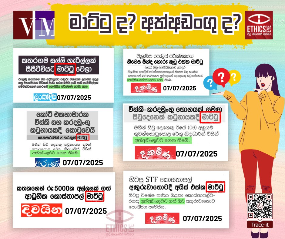 ප්රවෘත්ති වාර්තාවකදී අපේක්ෂා කරන්නේ නිවැරදි, වගකිවයුතු සහ විශ්වසනීය තොරතුරු සැපයීමයි. “මාට්ටු” යන්නෙන් එවැනි තොරතුරු සැපයීමකට හානි සිදුවිය හැකි නොවේද?