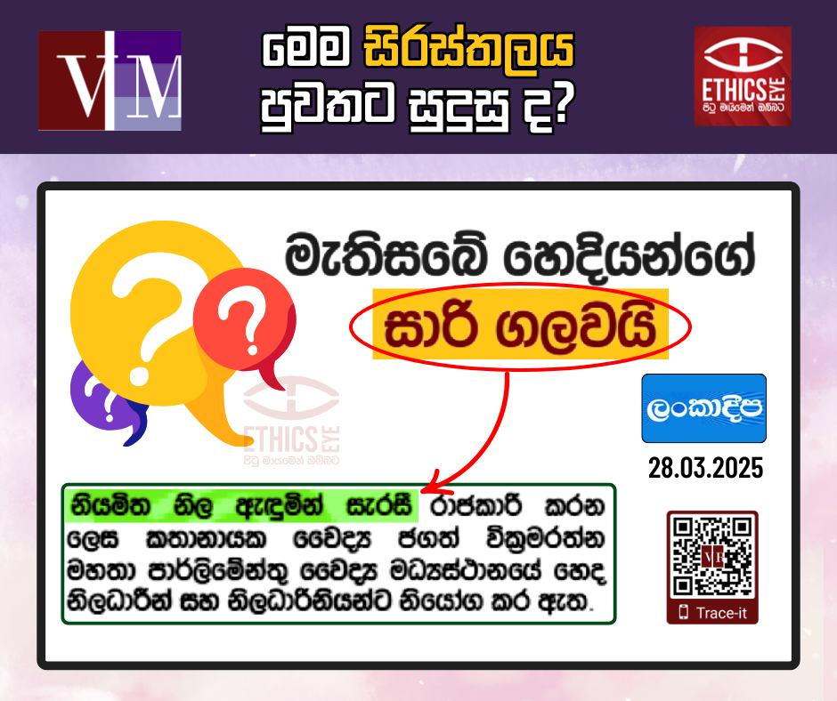 මෙම සිරස්තලය පුවතට සුදුසු ද?