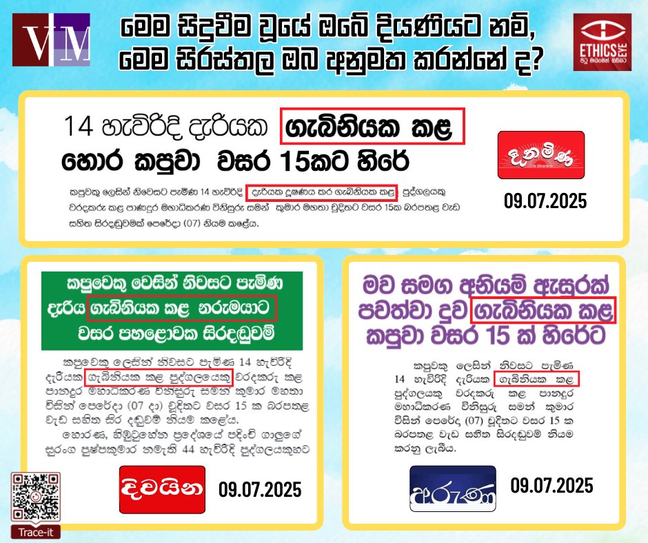 “ගැබ්ගැන්වීම” වෙනුවට ලිංගික අපරාධයකට ලක්වූවා යන්න සඳහන් කිරීම තුලින්, සිද්ධියේ සත්ය ස්වභාවය පාඨකයාට අවබෝධ වනවා පමණක් නොව, වින්දිතයාට සිදුවූ අසාධාරණය නිසි ලෙස සන්නිවේදනය නොවන්නේද?
