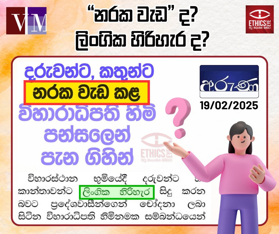 1) පුවතක මුලින්ම ග්රහණය වන සිරස්තලය තුළ “නරක වැඩ” යන්න යෙදීම ඔස්සේ සිදුවී ඇත්තේ ලිංගික අපරාධයක් බව පාඨකයන්ට නිවැරදිව සන්නිවේදනය වන්නේ ද? එමගින් එම අපරාධයෙහි ඇති බරපතල භාවය සැහැල්ලු කොට නොදැක්වෙන්නේ ද?