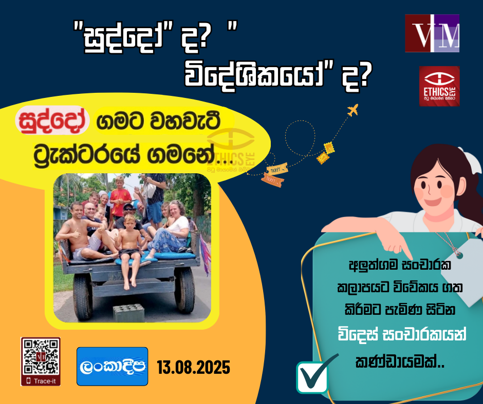 මෙම සිරස්තලයේ “සුද්දෝ” යන යෙදුම වෙනුවට, පුවත් අන්තර්ගතය තුළ වඩාත් නිවැරදිව දැක්වෙන “විදෙස් සංචාරකයන්” යන්න සදාචාරාත්මක මාධ්‍ය වාර්තාකරණයට වඩාත් උචිත භාෂා භාවිතයක් නොවේද?