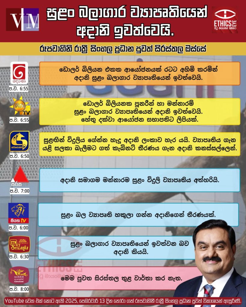 (YouTube වෙත එක්කොට තිබූ, පෙබ. 13, 2025 දින තෝරාගත් රූපවාහිනී රාත්රී ප්රධාන සිංහල පුවත් විකාශයන් ඇසුරිණි.)