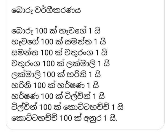 100 Hewages = 1 Samantha