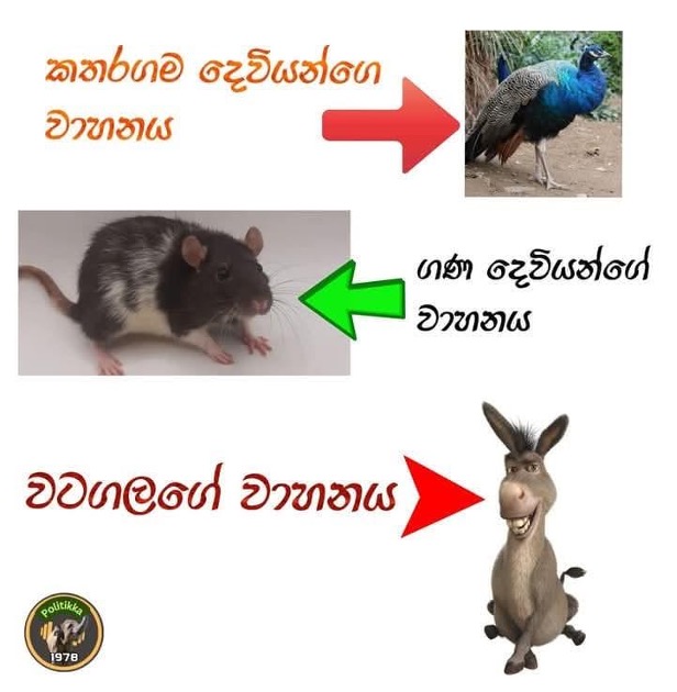 God Kataragama’s vehicle (Hindu and Buddhist deities have specific animals as vahana or vehicles that carry the deity, and that represent spiritual or psychological forces associated with each deity (https://www.learnreligions.com/vehicles-of-the-gods-1770297).