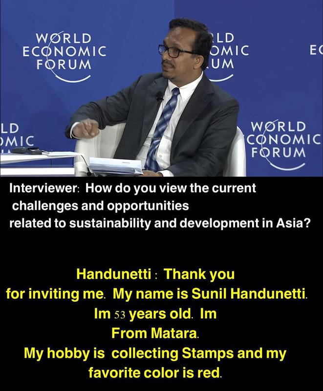 Context: Referring to a response made by Minister Sunil Handunneththi during a panel discussion at the 16th Annual Meeting of the New Champions hosted by the World Economic Forum in June.