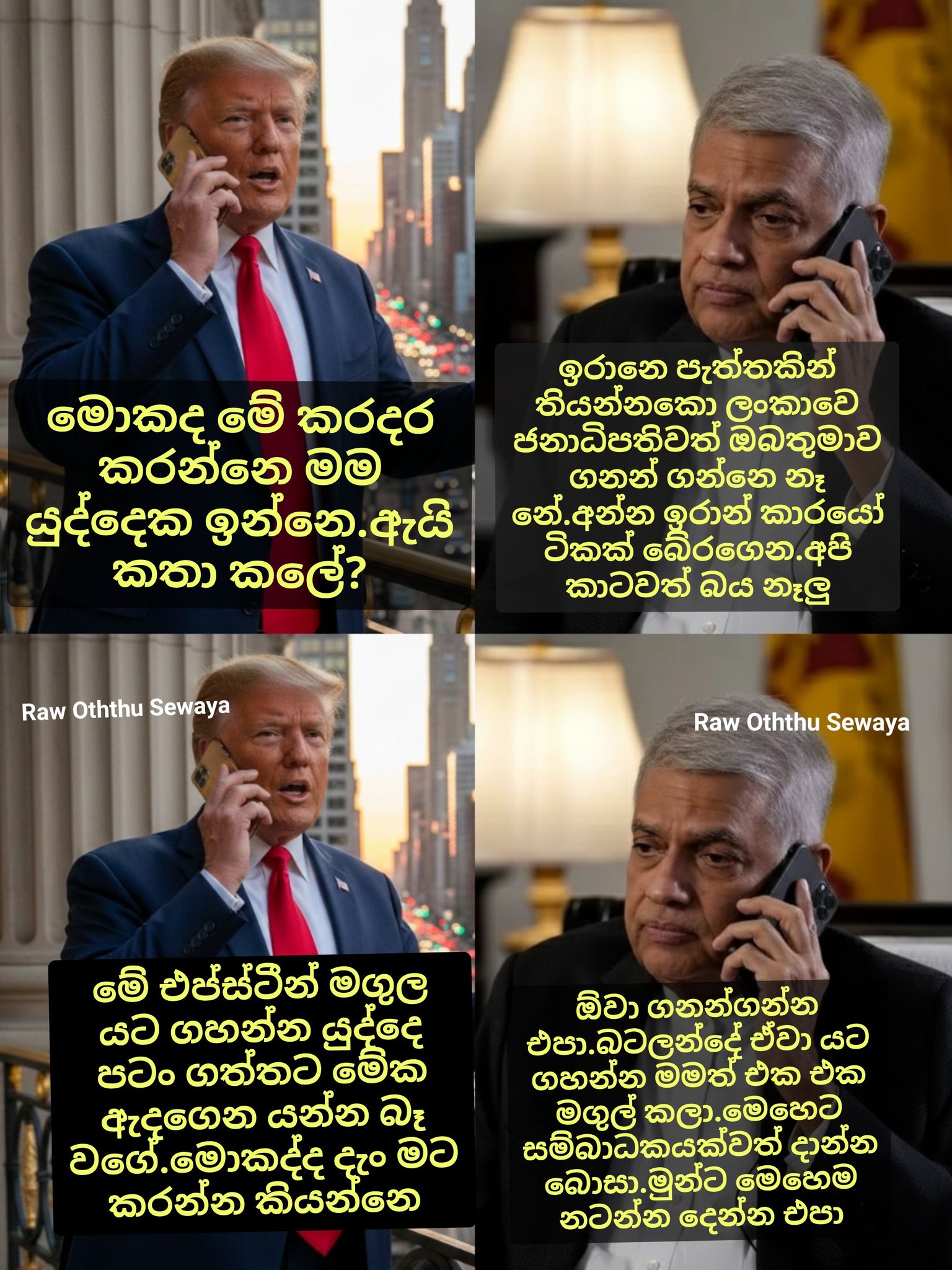 Wickremesinghe (Top right): Forget Iran, not even Sri Lanka’s president takes you seriously. Did you hear? He has saved a bunch of Iranians, and is saying that they are not afraid of anyone.