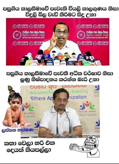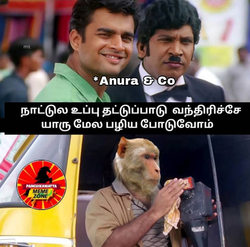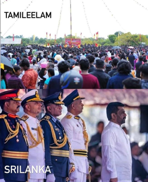 The meme juxtaposes the Mullivaikkal Remembrance Day commemoration in Mullaitivu with the state-led National War Heroes’ Day celebrations in Borella.