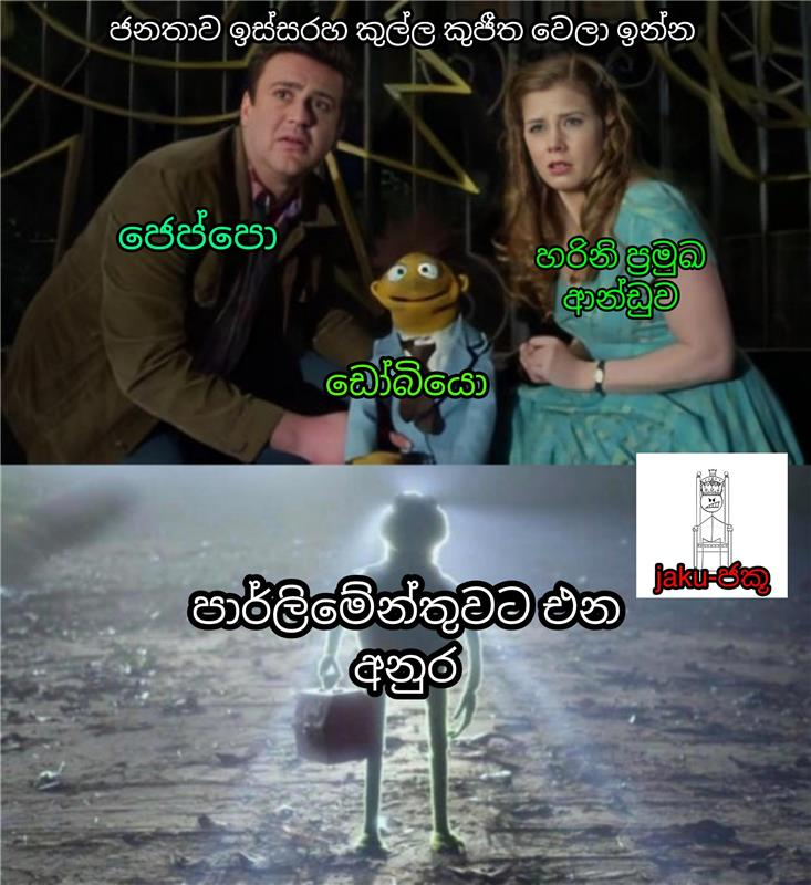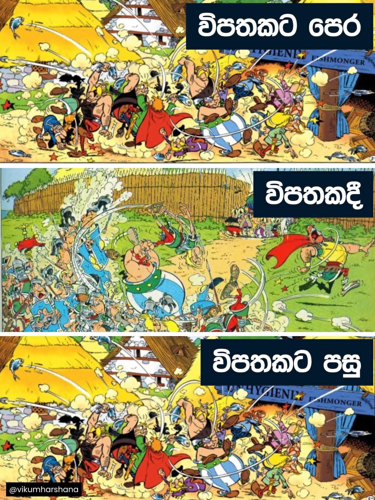 Top: The jeppas (JVP supporters), dobis (“laundryworkers”; disparaging reference to those who indiscriminately defend the government), and Harini and the government who have been utterly humiliated before the public