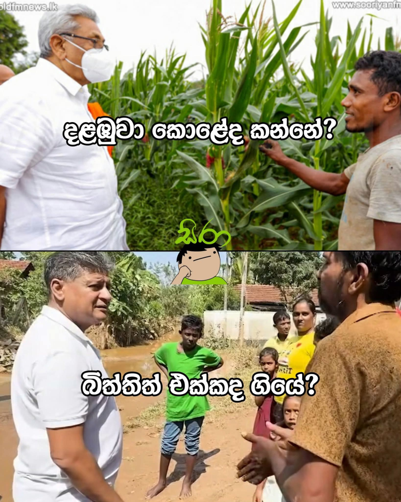 Context: While talking to a victim of a landslide, Sarvajana Balaya Leader Dilith Jayaweera asked if their house collapsed along with the walls. The remark was ridiculed on social media and compared to a similar comment made by former President Gotabaya Rajapaksa when talking to farmers facing crop damage.