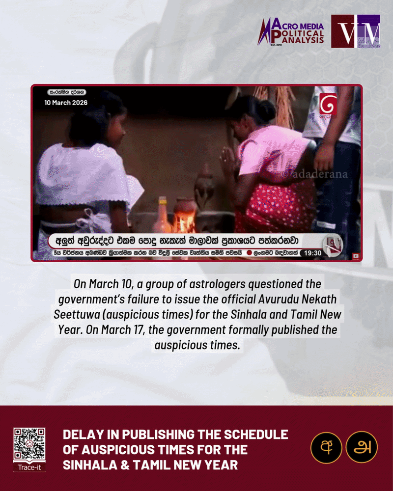 Delay in publishing the schedule of auspicious times for the Sinhala & Tamil New Year