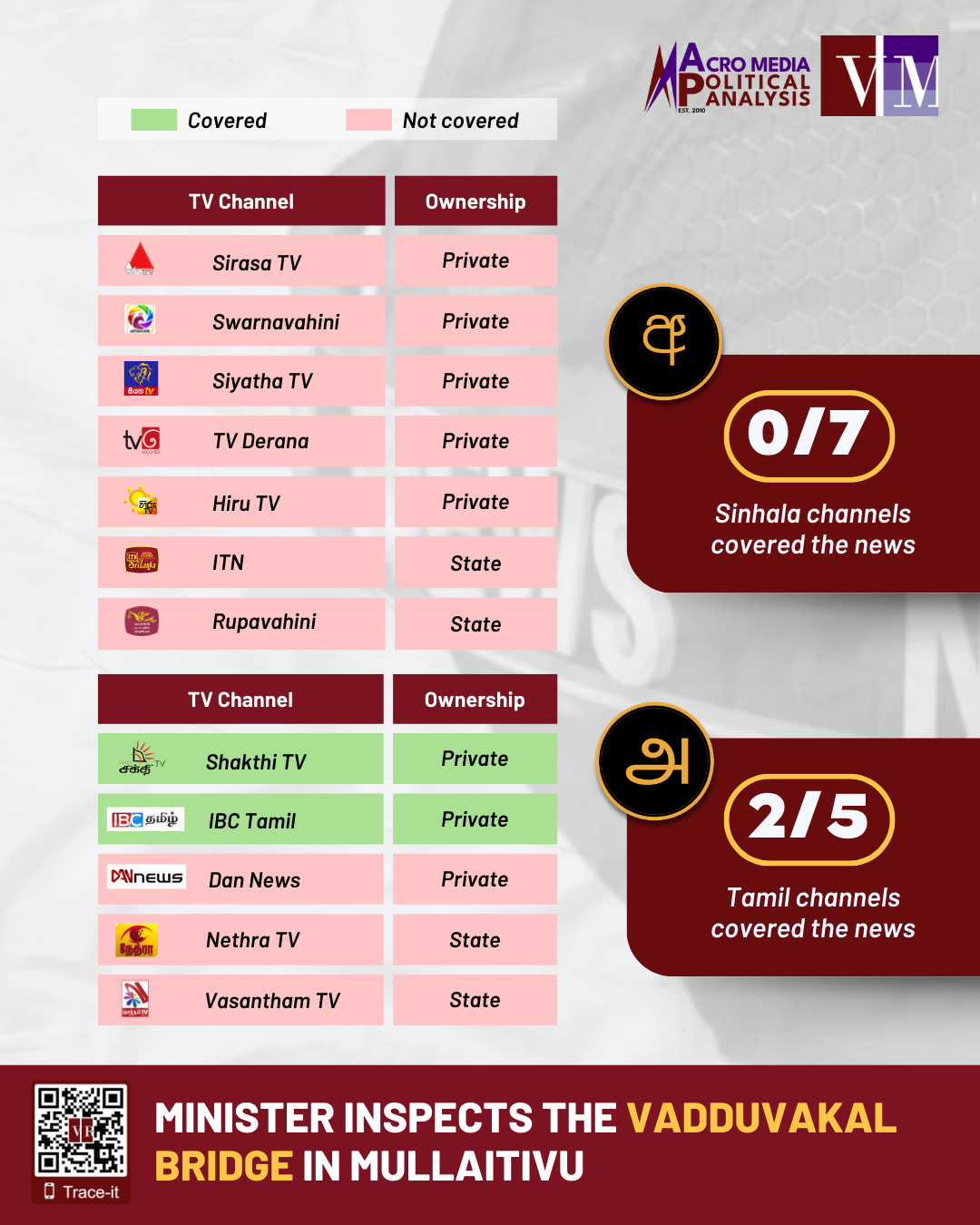 How did the Sinhala & Tamil TV channels cover this?
