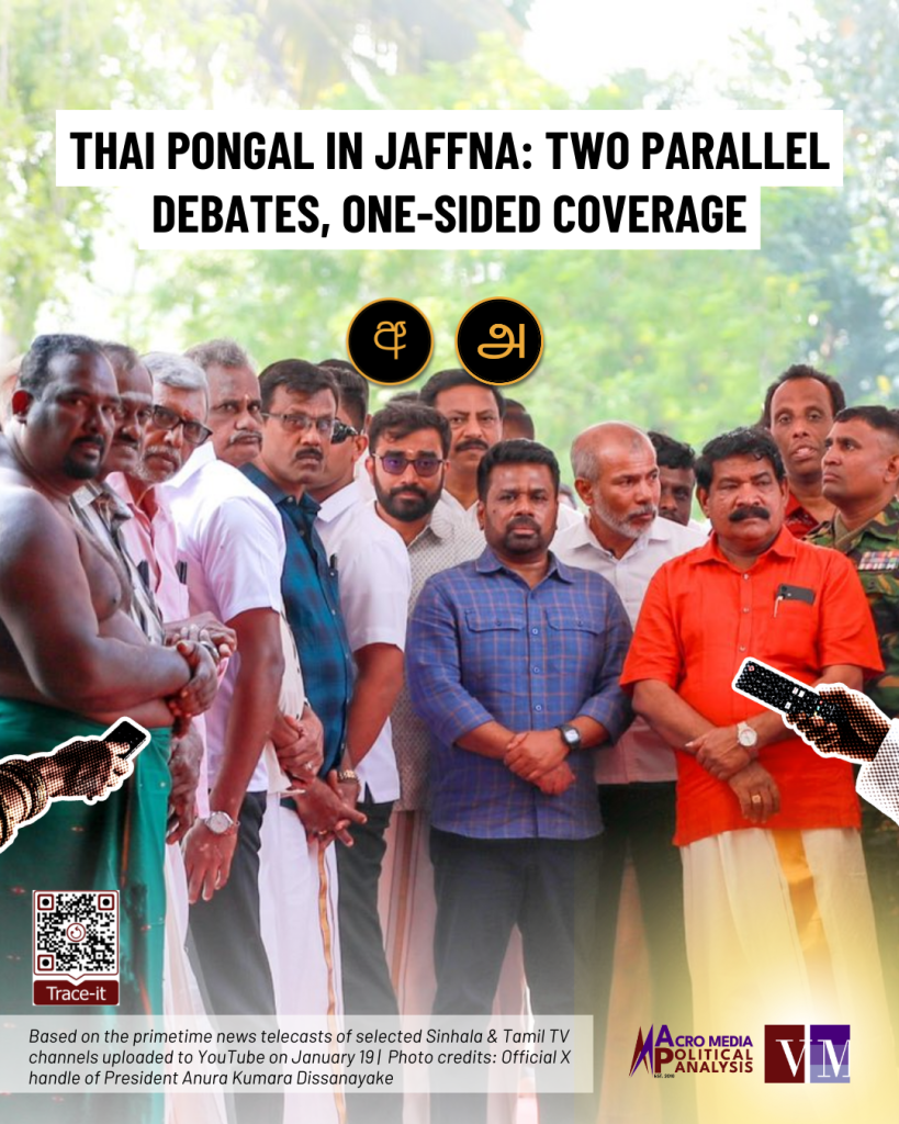 Sinhala and Tamil TV channels also covered the president’s participation in the Thai Pongal celebrations in Jaffna. Here’s how they featured the president’s remarks and the non-participation of Tamil political parties: