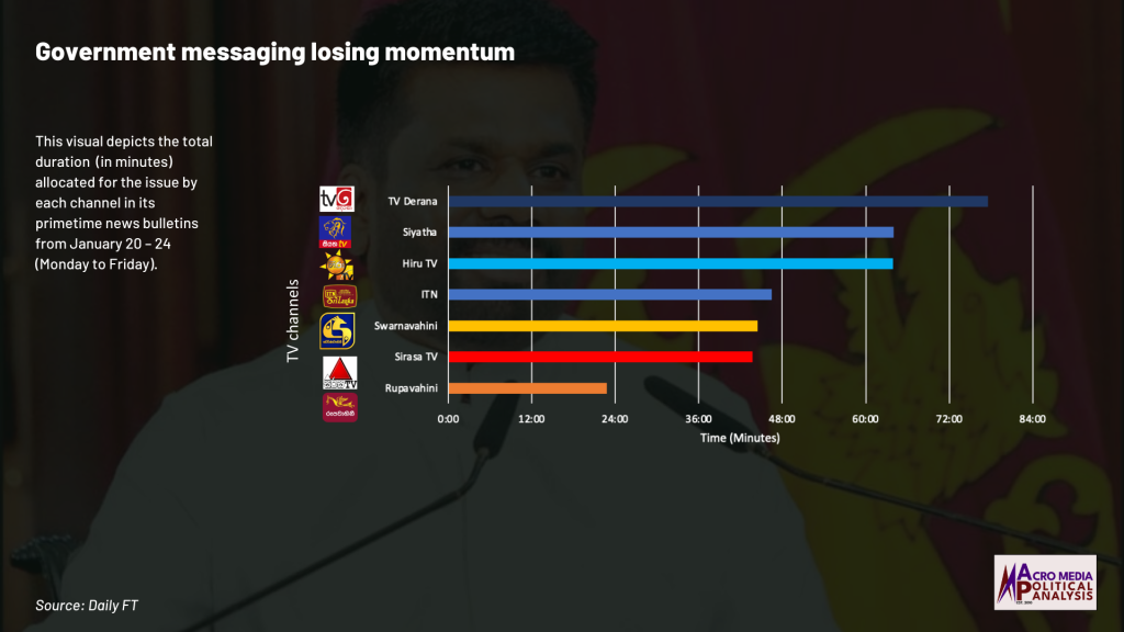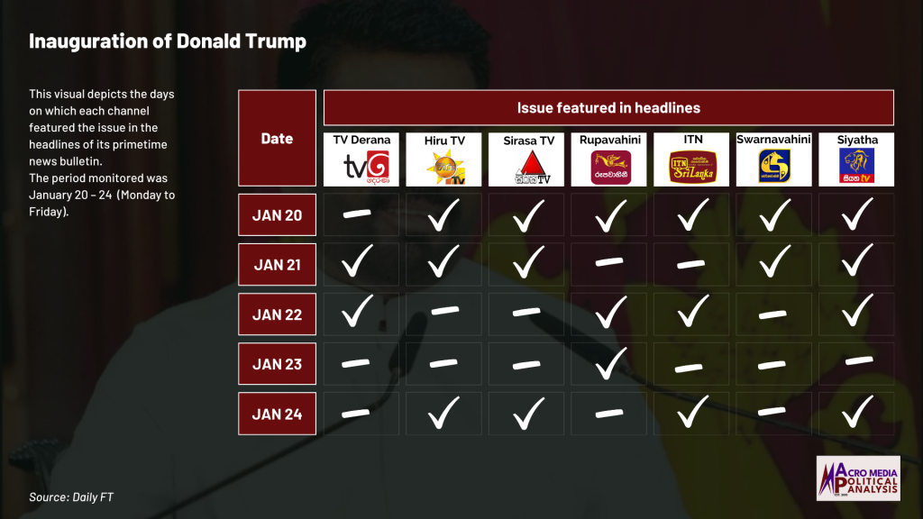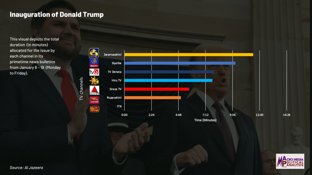 The data on television coverage is based on the monitoring of the primetime news telecasts of selected Sinhala language TV channels uploaded to YouTube.
