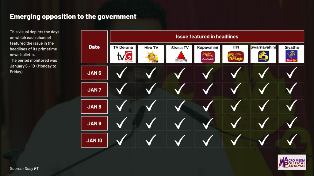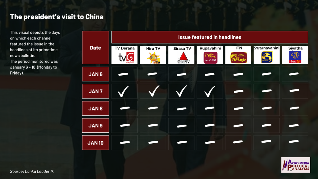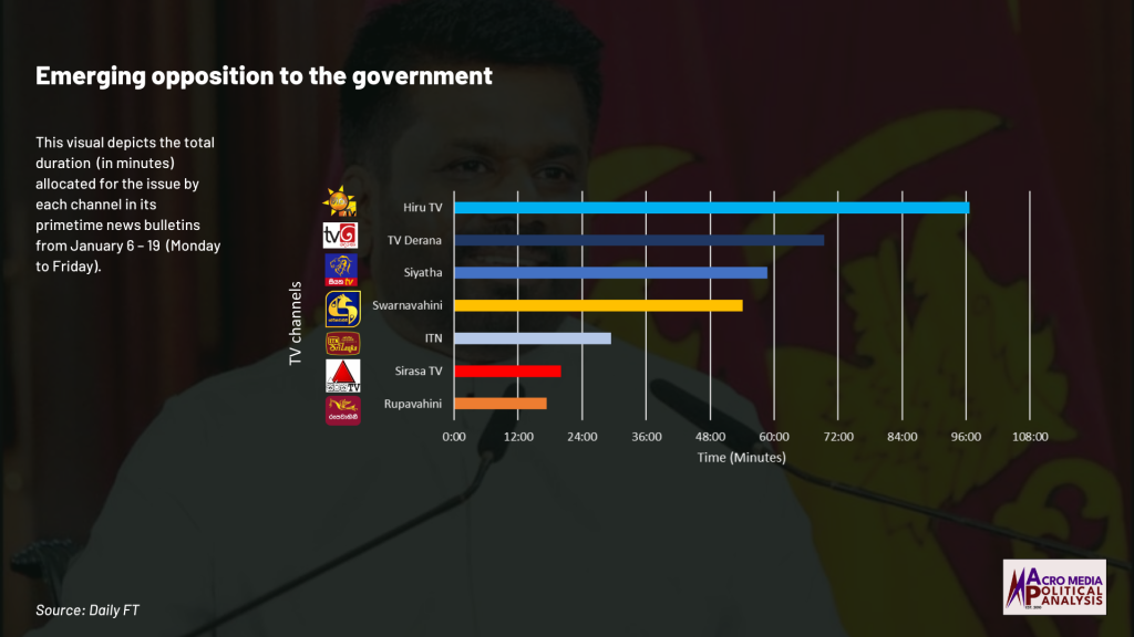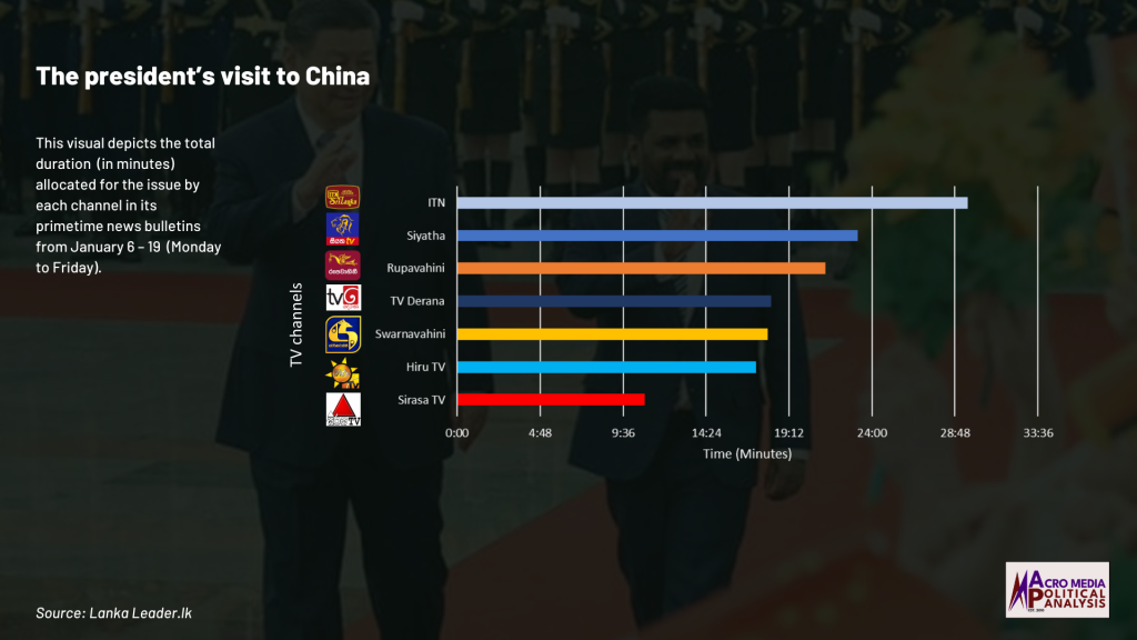 The data on television coverage is based on the monitoring of the primetime news telecasts of selected Sinhala language TV channels uploaded to YouTube.