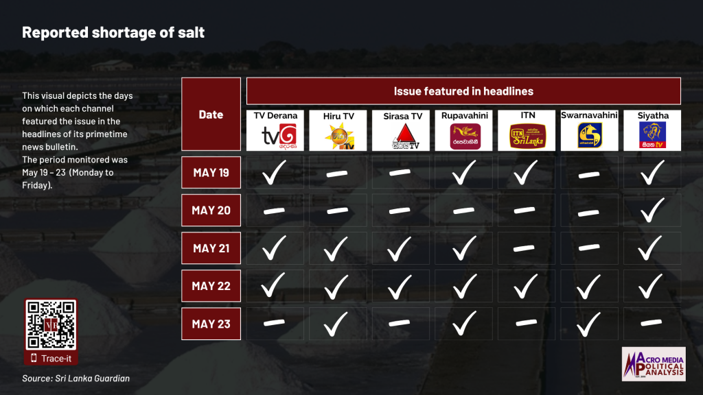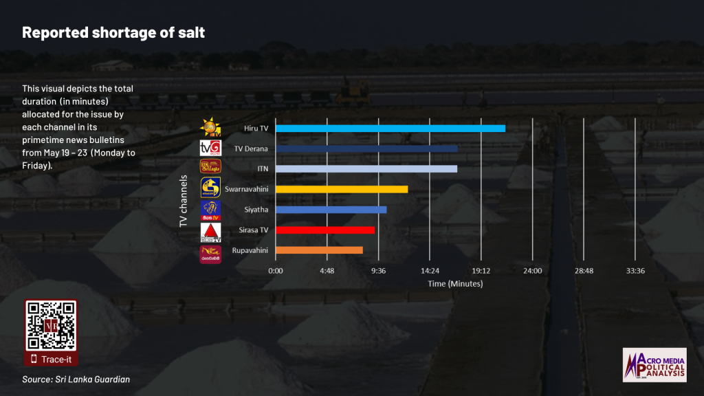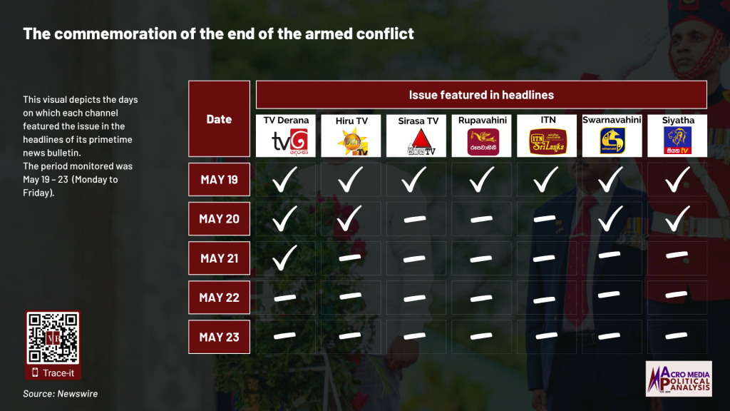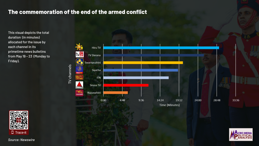The data on television coverage is based on the monitoring of the primetime news telecasts of selected Sinhala language TV channels uploaded to YouTube.