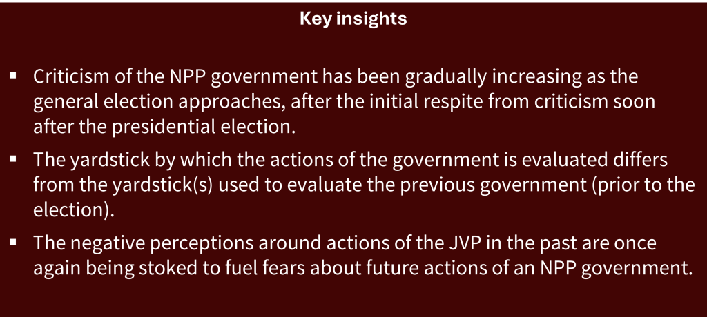 This strand of political critique was focused on the NPP, casting doubt over the stability and trajectory of the country if it came under a highly dominant JVP-led NPP government.