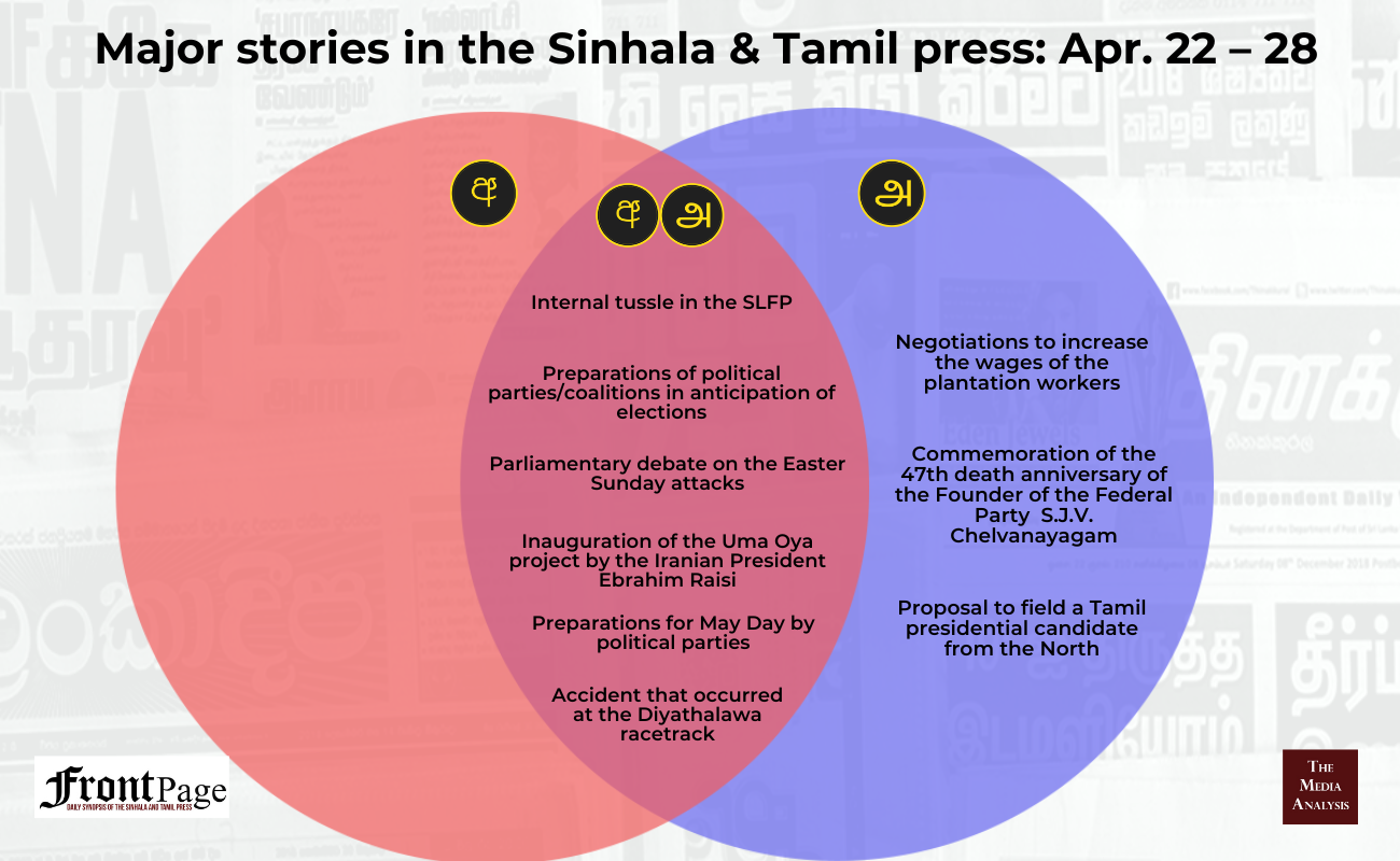 Over the past three weeks, the Sinhala press reporting, TV coverage and social media posts predominantly featured the SLFP’s internal tussle.[1] This week’s TMA will briefly unpack this tussle along three tiers.