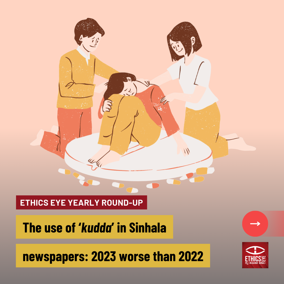 The use of the term kudda (druggie) in Sinhala newspapers increased in 2023 when compared with 2022. To find out how often the derogatory term was used, and which newspapers used it most frequently, click here