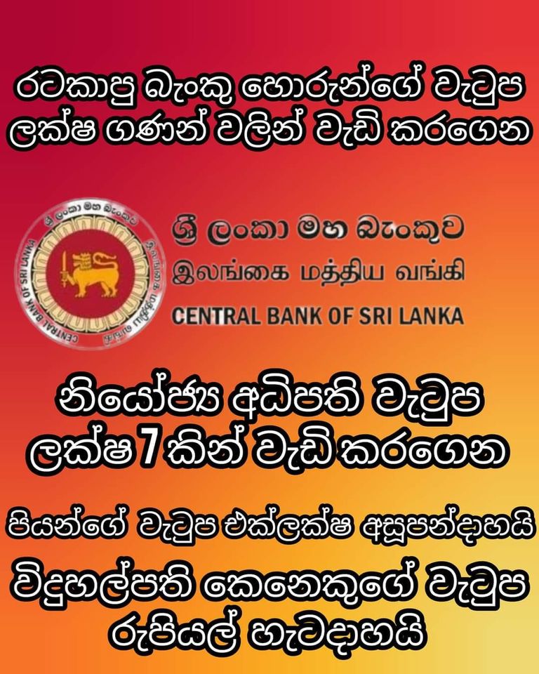 In February, the wages of the officials of the Central Bank of Sri Lanka (CBSL) were adjusted by proportions of 29.53 percent to 79.97 percent.[1][2] Subsequently, several government and opposition MPs raised the matter of the wage increase in parliament.[3][4]