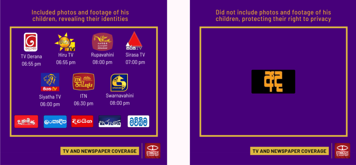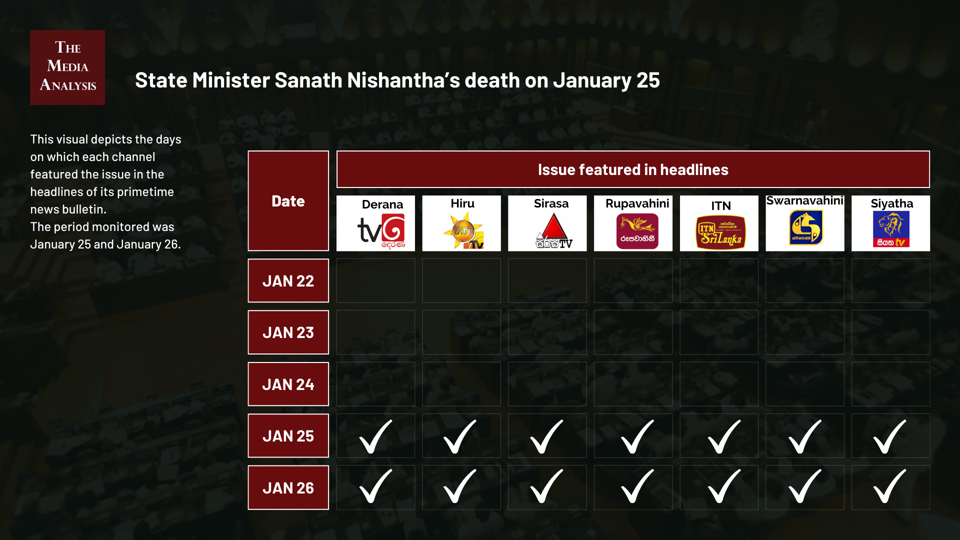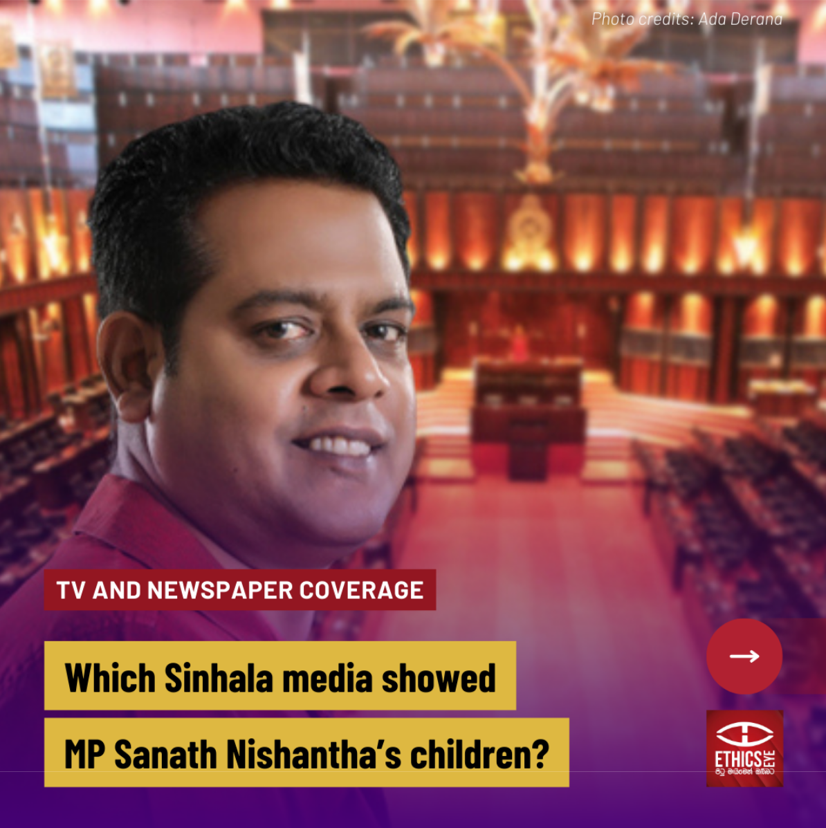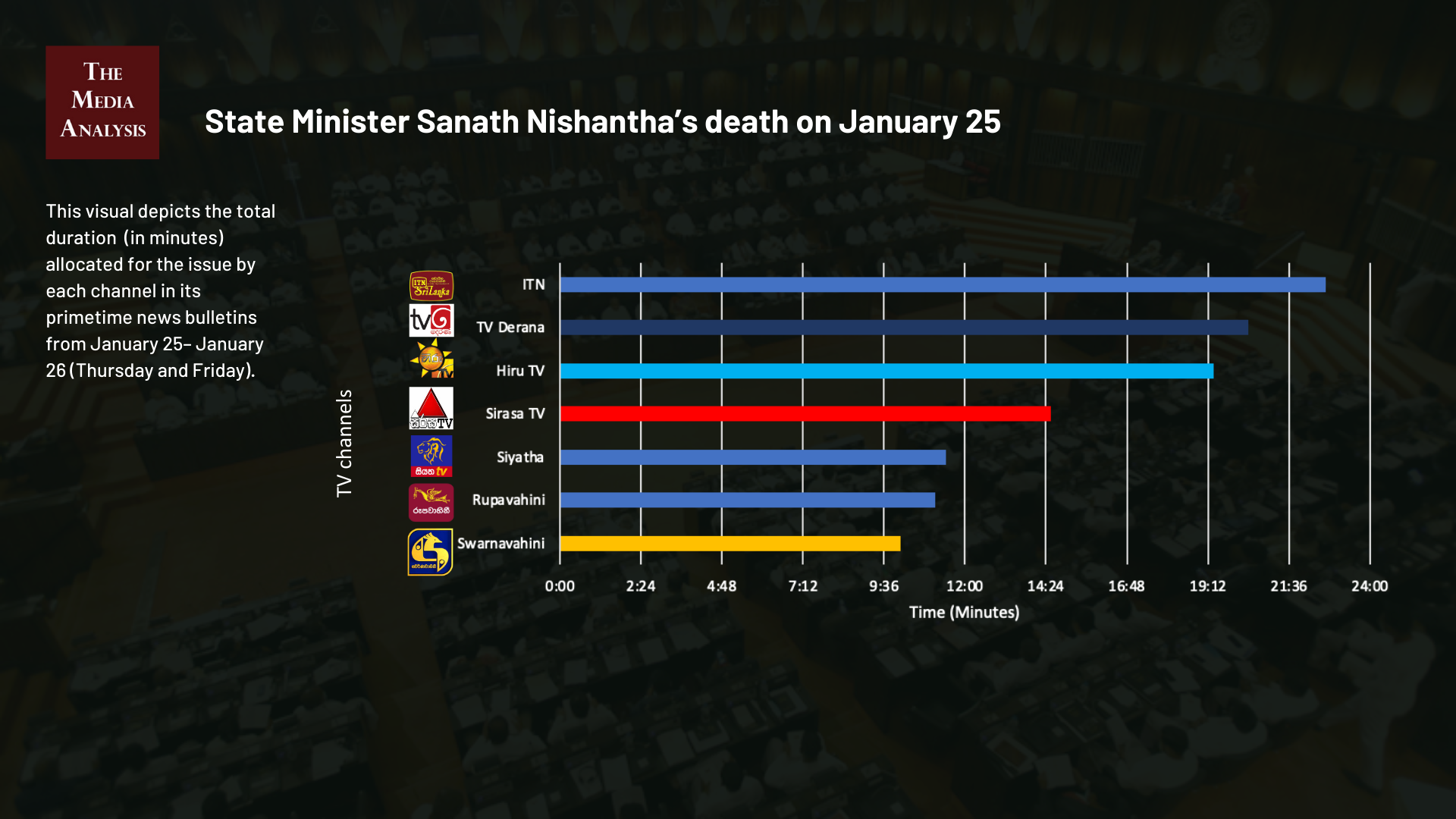The data on television coverage is based on the monitoring of the primetime news telecasts of selected Sinhala language TV channels uploaded to YouTube.