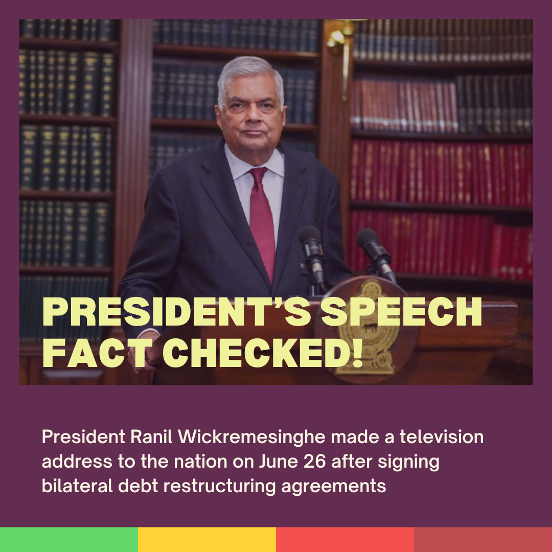 On June 26, President Ranil Wickremesinghe made a television address to the nation after signing bilateral debt restructuring agreements. Are the claims made in his speech correct?