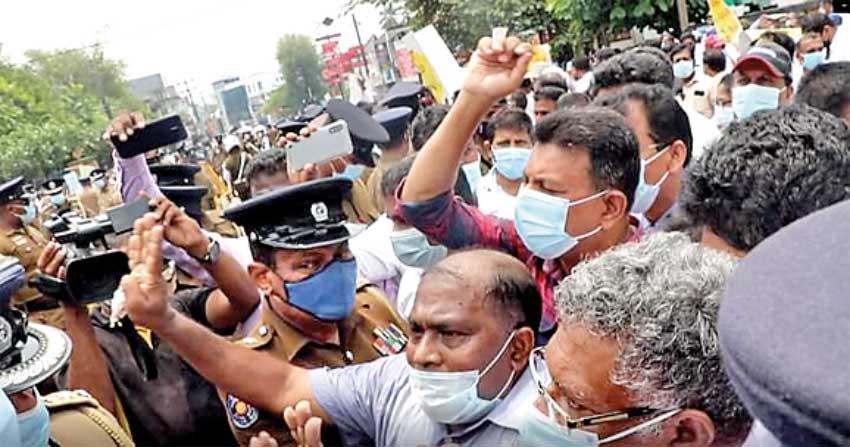 Event: On June 26, teachers and principals launched an island-wide trade union action by reporting sick and staging a protest near the Fort Railway Station over several demands, including solutions for salary disparities.[1][2] The police fired water cannons and tear gas to disperse the protest.[3][4]