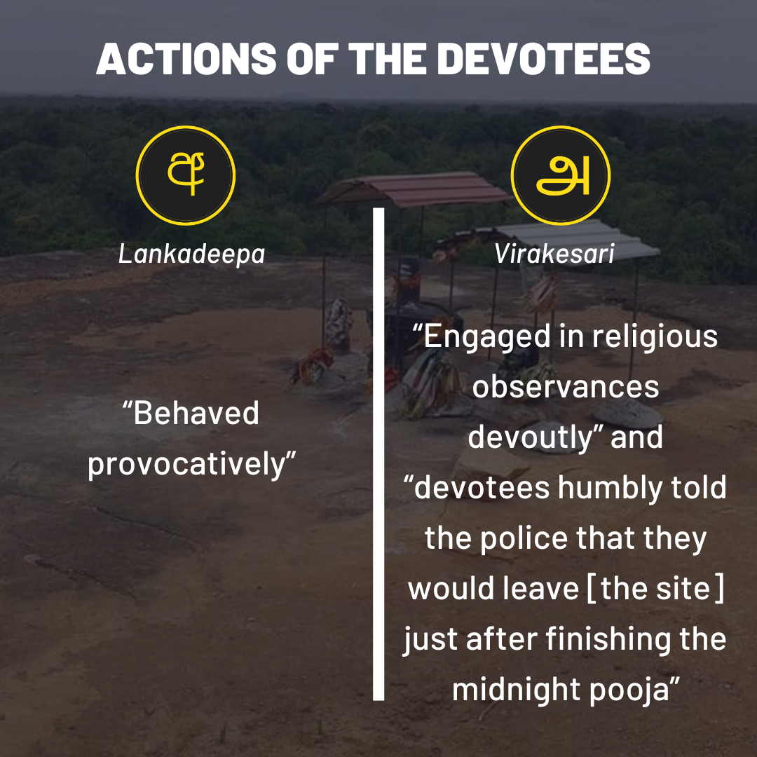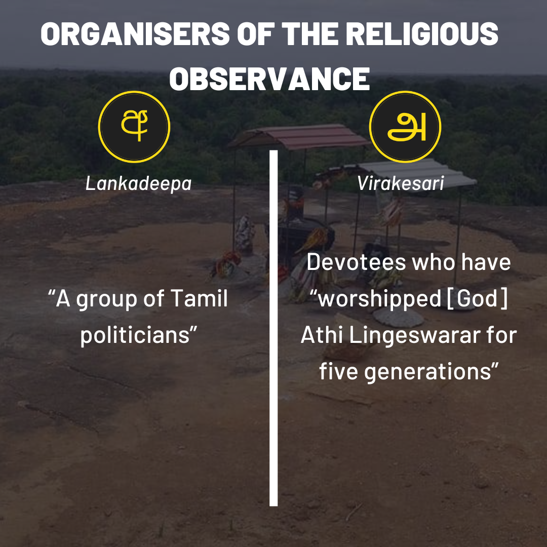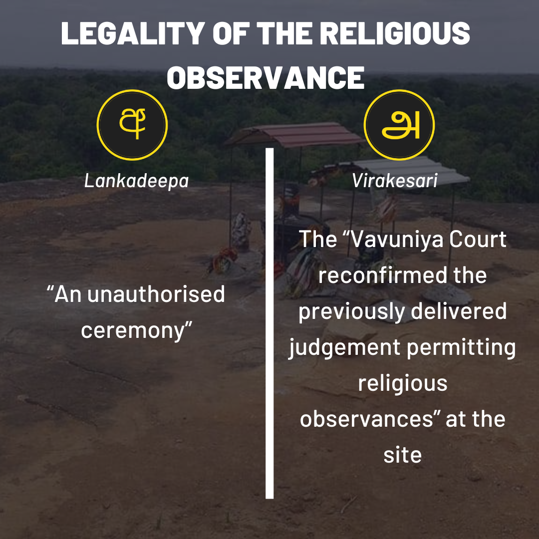 On March 8, during the Shivarathri pooja, a tense situation erupted at a contested sacred site in Vavuniya. During the pooja, some devotees were arrested and reportedly ill-treated by the police. The Sinhala newspaper Lankadeepa and Tamil newspaper Virakesari provided contrasting coverage of the incident. For more information, click here